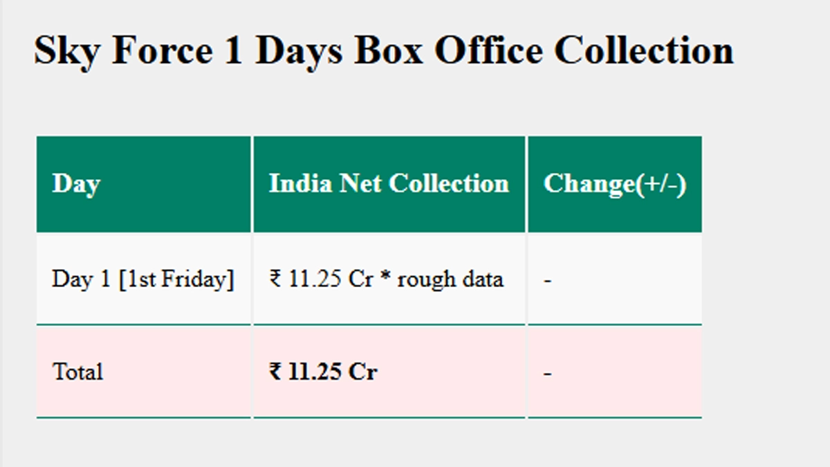 Sky Force, a war drama starring Akshay Kumar alongside debutant Veer Pahariya, hit theatres on January 24, receiving a mixed response from the audience. Directed by Abhishek Anil Kapur and Sandeep Kewlani, the film opened to a promising start at the box office. According to Sacnilk, Sky Force earned INR 11.25 crore on its opening day in India, inching closer to the INR 15 crore mark. ‘Sky Force’ Movie Review: Akshay Kumar Overshadows a Struggling Veer Pahariya and Yet the War Drama Refuses To Take Flight!