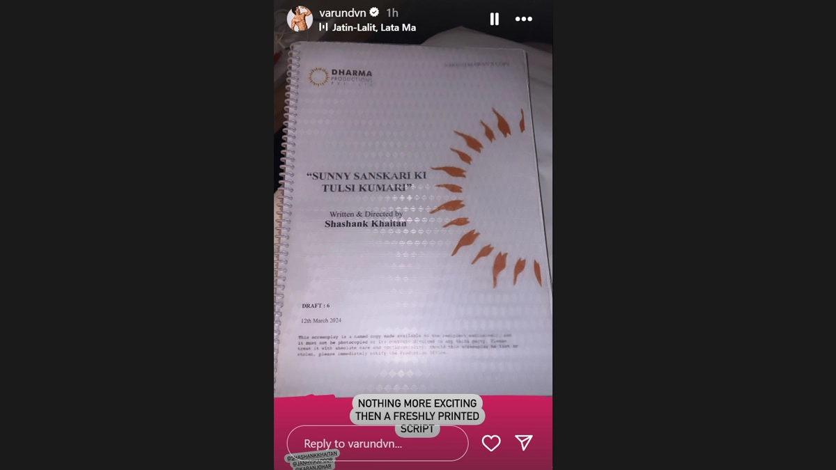 After Bawaal, Varun Dhawan and Janhvi Kapoor will be seen together in Shashank Khaitaan's upcoming film, Sunny Sanskari Ki Tulsi Kumari. On Thursday, Varun gave a glimpse into the film's 'freshly printed script'. The front page of the script displays the film's title, the logo of the production house, and director Shashank Khaitan's name. Varun shared the pic and wrote, 'Nothing more exciting than a freshly printed script'. He added the iconic track from Karan Johar's movie Kabhi Khushi Kabhie Gham to make it special. Sunny Sanskari Ki Tulsi Kumari: Varun Dhawan and Janhvi Kapoor to Star in Director Shashank Khaitan's Next (Watch Announcement Video).