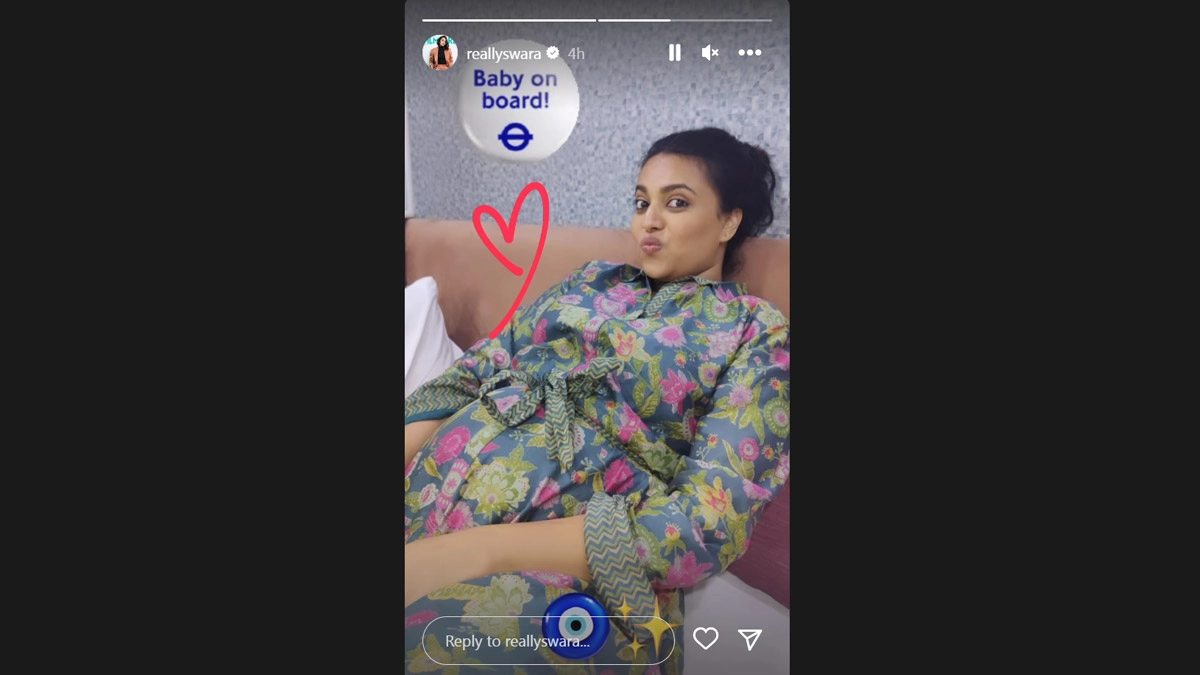 Swara Bhasker, who recently announced pregnancy with Fahad Ahmad, on social media was seen flaunting her baby bump in new picture on Instagram story today. In the image shared, the mom-to-be can be seen pouting as she smiles for the cam while relaxing on couch in her maternity wear. She used heart and evil eye emojis on the photo. Swara Bhasker Pregnant: Sonam Kapoor Congratulates Veere Di Wedding Co-Star on Instagram!