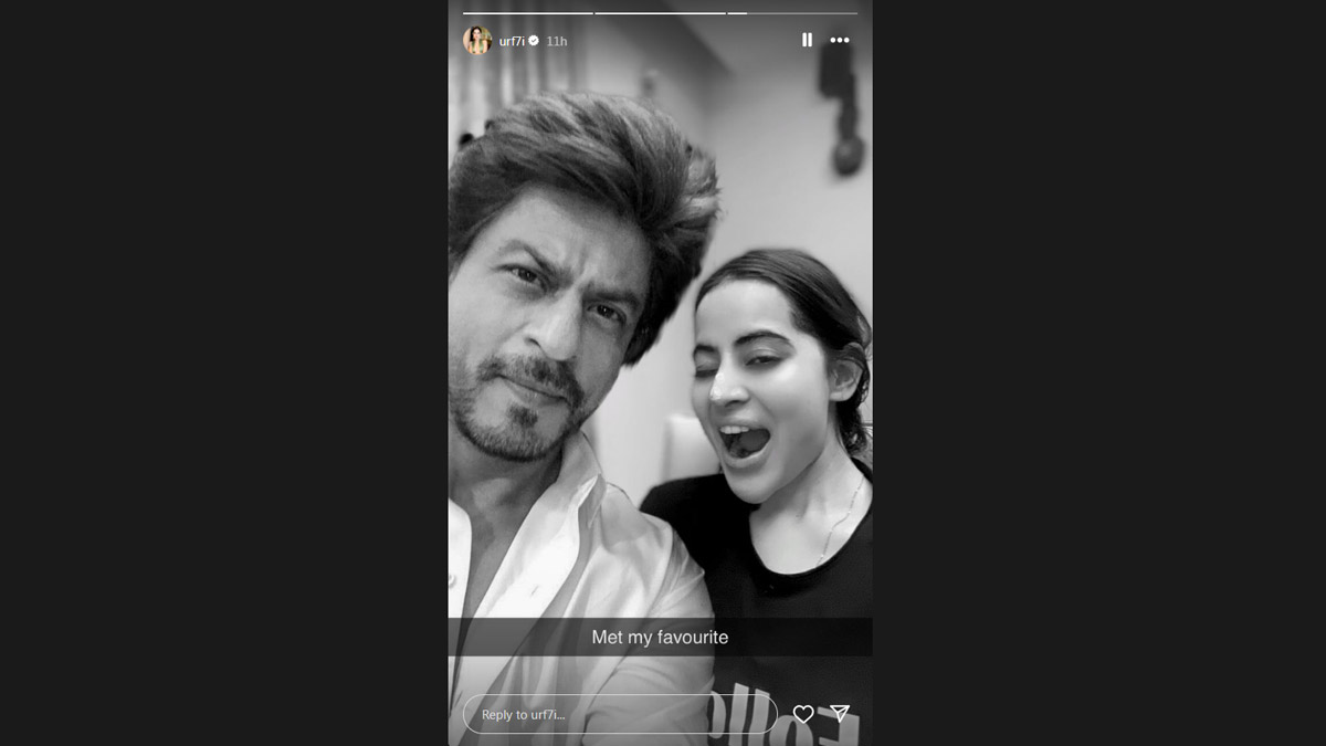 Uorfi Javed often surprises fans with her bizarre DIY looks. But this time, there’s another major surprise from the actress-turned-fashion influencer, and it’s unrelated to fashion. She bumped into King Khan! Yes, Uorfi took to her Insta Story and shared a picture posing with Shah Rukh Khan. The monochrome picture has a blurry backdrop, appearing to be a selfie clicked by SRK. This photo might even make one wonder if the meetup truly happened or if it’s photoshopped. Uorfi has not mentioned when or where this encounter with SRK took place. What do you think? Is this pic of Uorfi with SRK real or fake? Uorfi Javed Meets Javed Akhtar, Takes a Dig at Trolls by Calling the Veteran Star Her 'Grandfather' (View Pic).