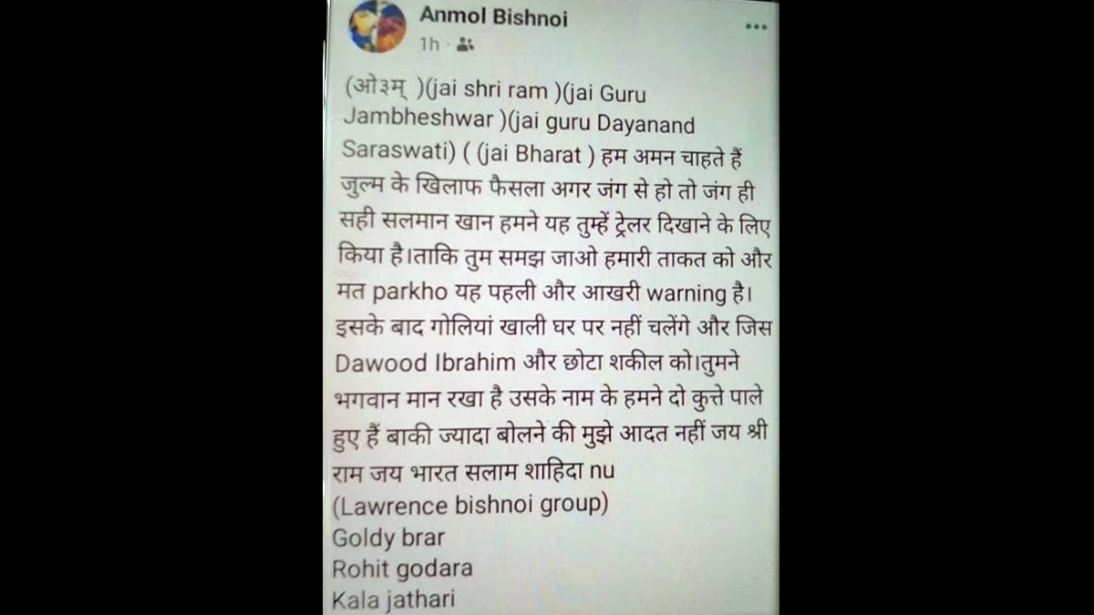 Anmol Bishnoi, brother of gangster Lawrence Bishnoi, has claimed responsibility for the shooting outside Salman Khan's Mumbai home. Anmol wrote on his Facebook declaring the attack as a mere trailer, warning that future assaults won't target the walls of the actor's residence. "ye sirf trailer that," he mentioned. He further stated, "hamari takat ko aur matt parkho. Yeh pehli aur akhri warning hai" (not to underestimate our power. This is both our first and final warning.) No Injuries Reported in Shooting Incident Outside Salman Khan's Residence, Confirms Mumbai Police.