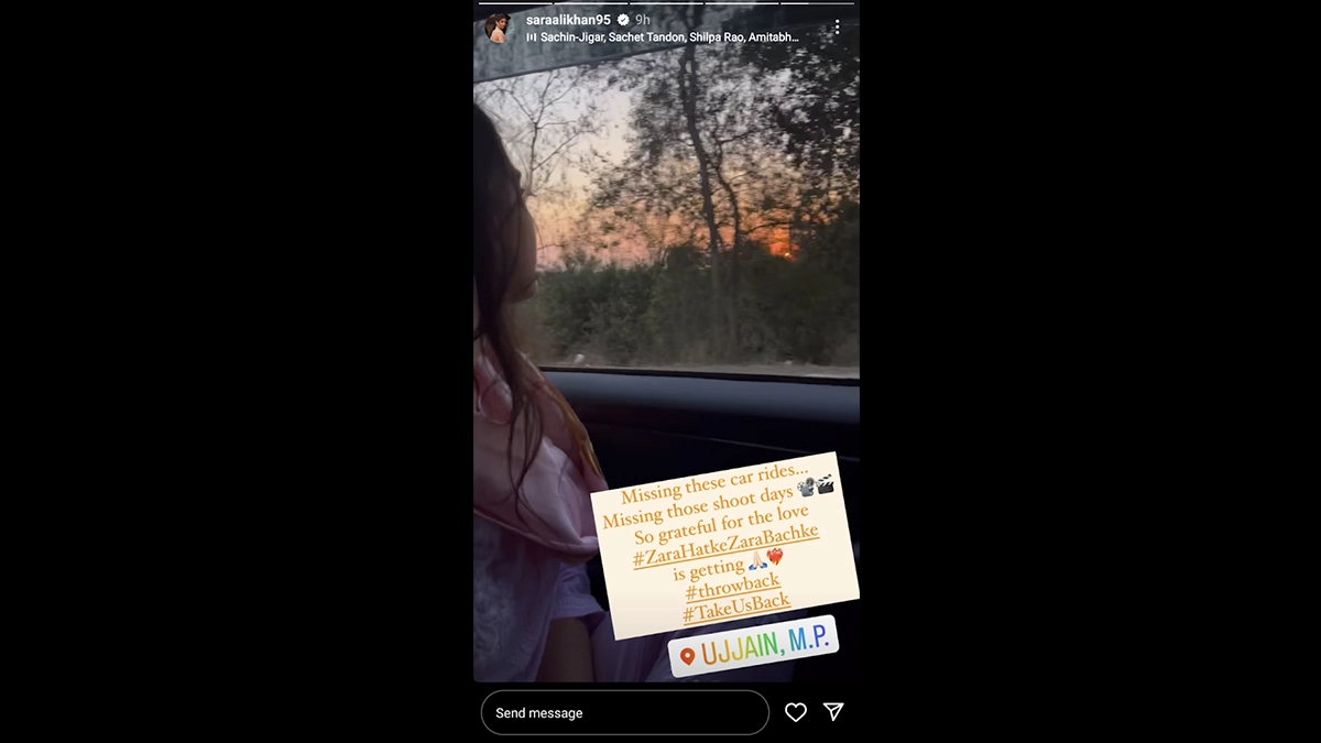 Actor Sara Ali Khan shared a throwback picture from the time when she was shooting for her film Zara Hatke Zara Bachke. She shared a short video and said she is missing the car ride and shoot days. Zara Hatke Zara Bachke Box Office: Did Producers of Vicky Kaushal-Sara Ali Khan Romcom Suffer Loss of Rs 5.30 Crore Over Their 'Buy One, Get One' Free Ticket Offer?.