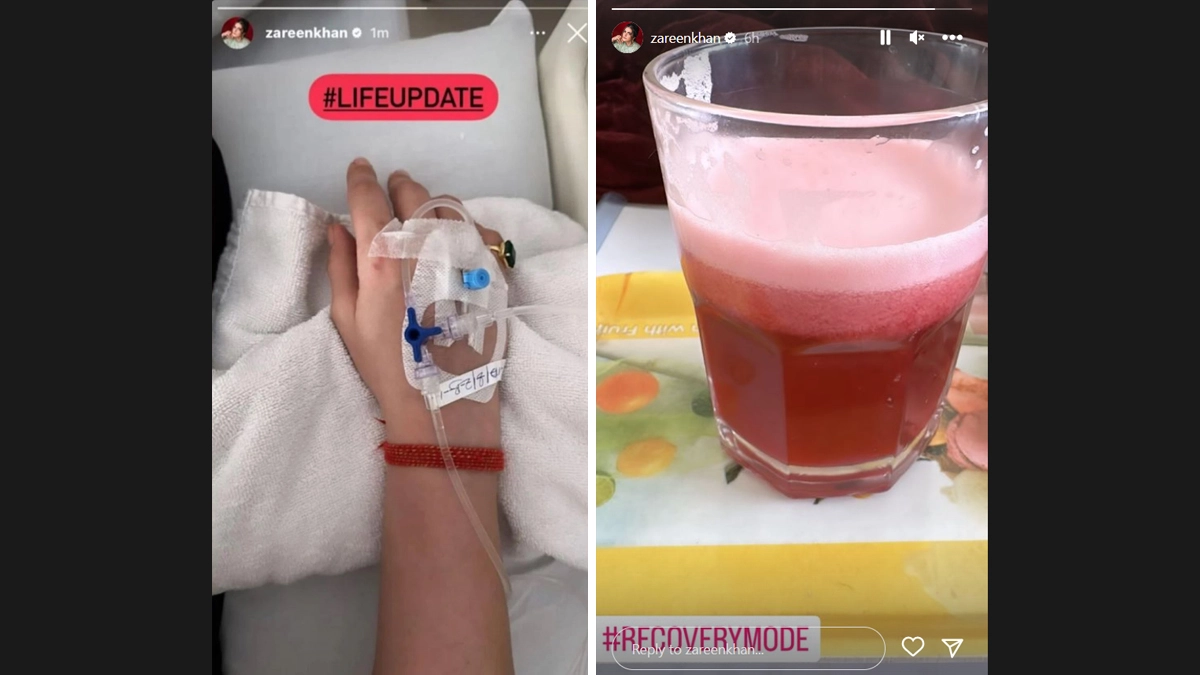 Bollywood actress Zareen Khan has been hospitalised in Mumbai reportedly due to dengue. As per report in Pinkvilla, she is down with fever and body aches. On August 16, without revealing her face, Khan shared picture of her hand from hospital on her Insta. Later, she also shared fruit juice glass and added in the caption, “#RecoveryMode”. Ram Charan Fans & Apollo Hospital Staff Celebrate With Cake, Balloons and Dance After Actor Welcomes Baby Girl! (Watch Videos).