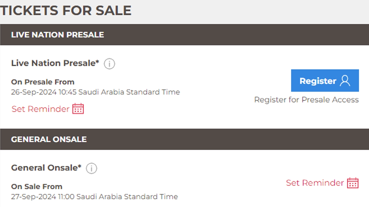 Coldplay, as part of their Music of the Spheres World Tour 2025, will be performing at Abu Dhabi's Zayed Sports City Museum on January 11, 12, and 14, 2025. Fans eager to secure their tickets should pay close attention to the booking dates and timings. The pre-sale tickets for the Abu Dhabi shows began on September 25. The Live Nation presale starts today, September 26, at 12 PM Gulf Standard Time (GST), while general ticket sales will go live on September 27, at 11 AM Saudi Arabia Standard Time. To secure presale tickets, fans must be registered on Live Nation’s official website. Coldplay Abu Dhabi Tickets: Disappointed Fans Share Screenshots After Failing to Secure Pre-Sale Tickets for the British Rock Band’s 2025 Concerts.