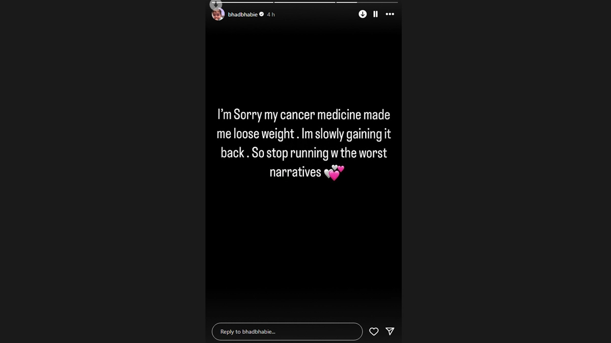 Bhad Bhabie, aka Danielle Bregoli, has been making headlines recently due to her dramatic weight loss. Her recent Instagram posts sparked speculation from netizens, with many wondering whether her transformation was due to a special diet or the side effects of Ozempic. In response to the growing concerns, the rapper addressed the issue with a shocking revelation. Bhad Bhabie shared an Insta Story saying, ‘My cancer medicine made me loose weight. I’m slowly gaining it back.’ However, she did not clarify when she was diagnosed with cancer or what type she has, leaving fans and followers worried about her health condition. Bhad Bhabie Welcomes First Baby With Boyfriend Le Vaughn; Rapper Announces The Good News On Insta.