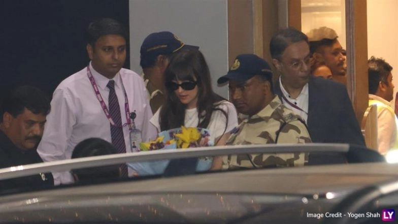 Coldplay has arrived in Mumbai ahead of their highly anticipated Music of the Spheres World Tour concerts at DY Patil Stadium on January 18, 19, and 21. This marks the band’s second time performing in India since their 2016 Mumbai show. Lead singer Chris Martin was spotted greeting the paparazzi with his signature warm smile as he stepped off the plane. Joining him was his girlfriend Dakota Johnson, adding to the excitement of the arrival. Fans can’t wait for the iconic band to light up the stage with their legendary tunes, and it’s sure to be a show to remember! Coldplay India Tour 2025: Jasleen Royal Set to Become the First Indian Artist to Open for British Band During ‘Music of the Spheres’ Concert in Mumbai.