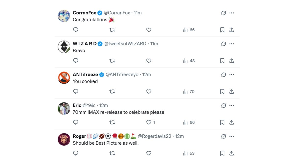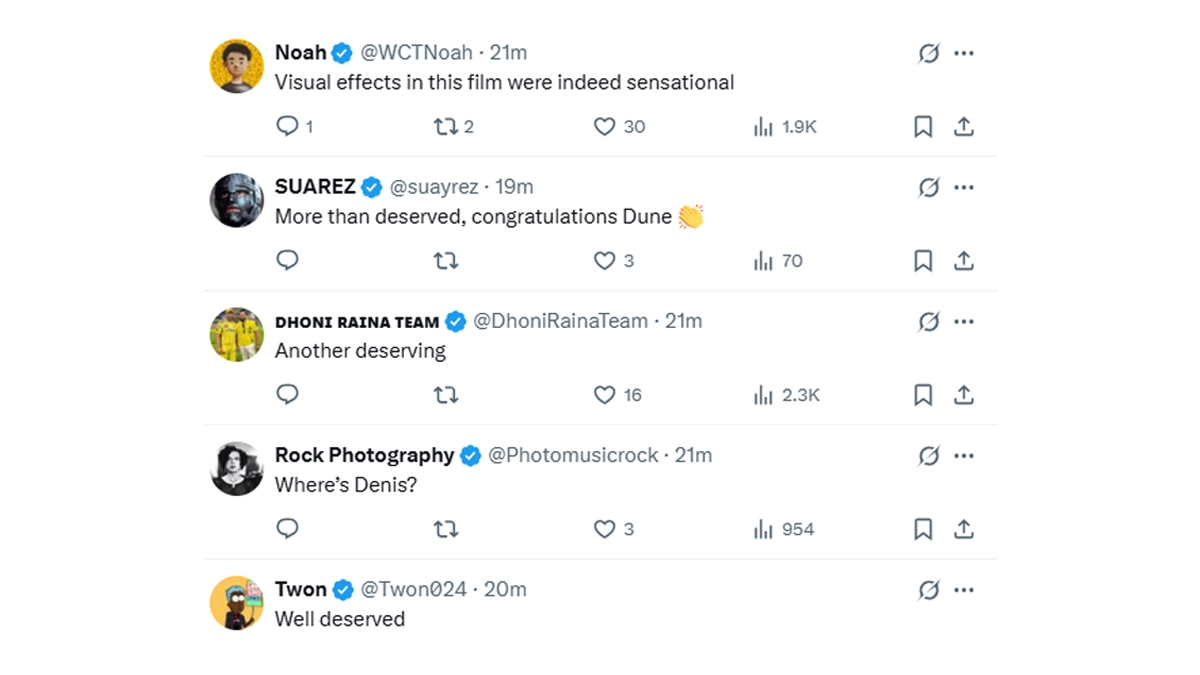 The visions are clear now. DUNE: PART TWO wins the Oscar for Best Visual Effects. #Oscars pic.twitter.com/qqHvpjrNYK