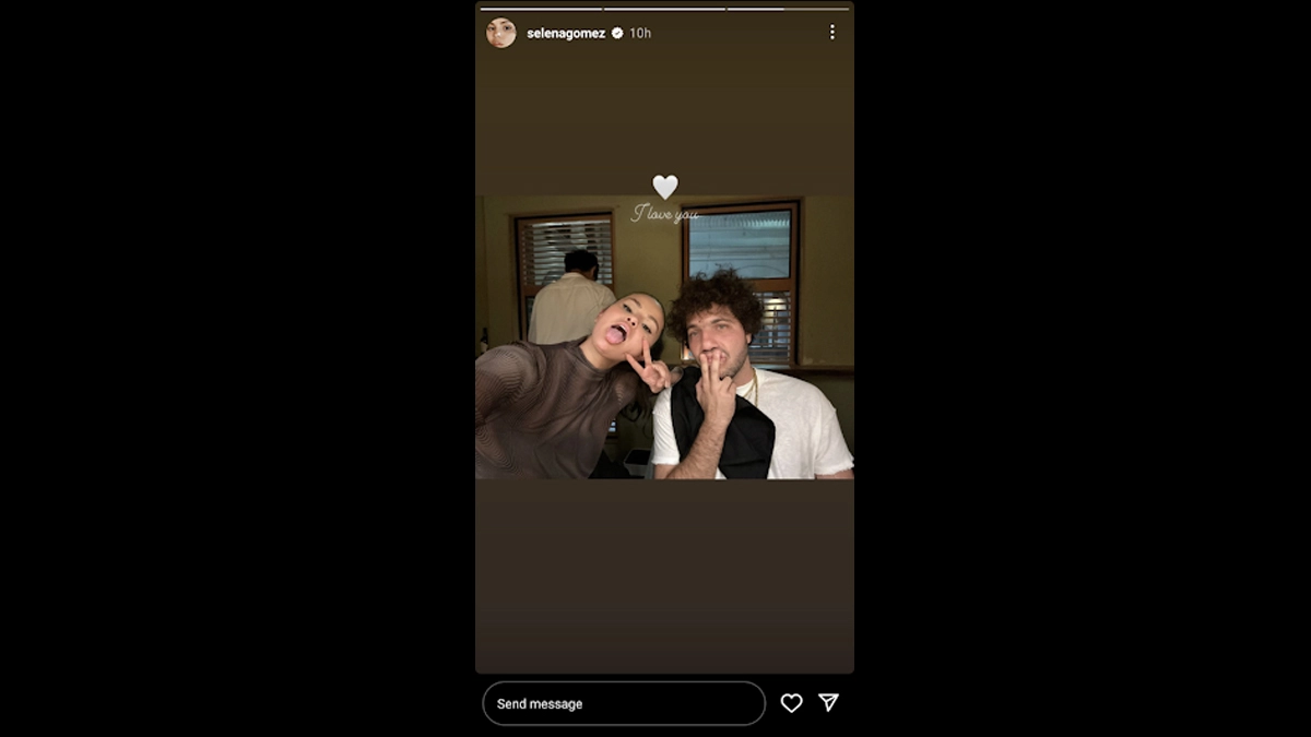 Selena Gomez is deeply in love with Benny Banco and isn't hesitating to express it openly. She demonstrated her affection for Benny; Gomez posted a heartfelt Valentine's Day message on her Instagram Story to commemorate the occasion. In the snapshot, the "Calm Down" singer snuggles up to the record producer, playfully sticking out her tongue and flashing the peace sign. Benny, meanwhile, flashes a V sign while pressing his fingers against his lips. "I love you," captioned Gomez. On the other hand, Blanco also posted a picture of his girlfriend on Instagram, captioning it with ''My Valentine''. Selena Gomez Shares Loved-Up Pictures With Boyfriend Benny Blanco on Instagram!