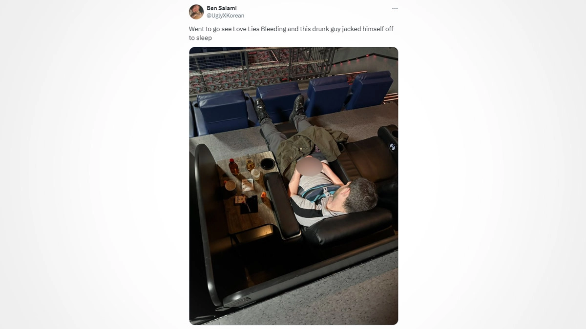 A man at MJR Southgate Cinema in suburban Detroit was arrested for masturbating during the screening of the new Kristen Stewart's lesbian film Love Lies Bleeding. The Southgate Police Department confirmed the incident to Variety, stating the patron remains in custody. While no charges have been formally filed yet, he could be facing penalties related to indecent exposure or disorderly conduct. Connected to the lewd incident, an X user, namely @UglyXKorean, has shared a picture of a man asleep in a reclining movie theatre chair with his pants down. Woman Masturbating in Public Viral Video: Disgusting Clip Shows Female Indulging in Self-Pleasure in Front of Kids and Other People.