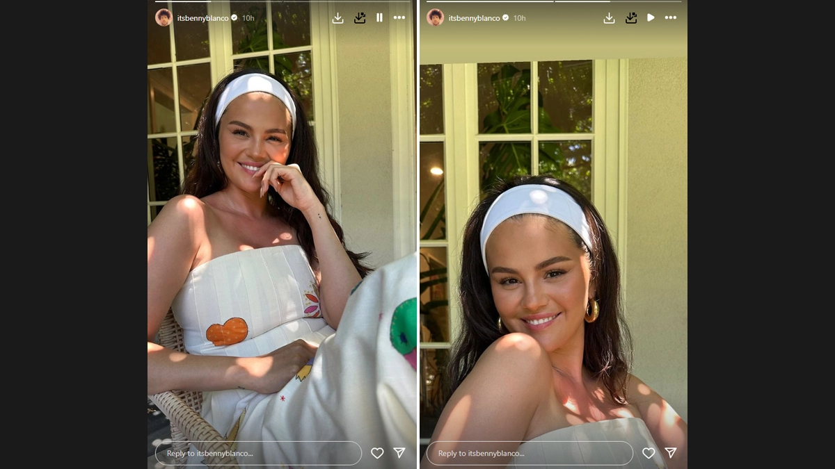 Selena Gomez and Benny Blanco have been delighting fans with their latest Instagram Stories, where they shared endearing snapshots that set major relationship goals. Benny posted a series of stunning photos of Selena, who looked radiant in a white strapless dress adorned with colorful details. She completed her chic ensemble with a matching headband and hoop earrings. Selena also shared a heartwarming snap of the two together, all smiles and cuddled up for the camera. Their adorable posts have sparked joy and admiration from fans, showcasing their strong bond and undeniable chemistry. Selena Gomez Shares Loved-Up Pictures With Boyfriend Benny Blanco on Instagram!