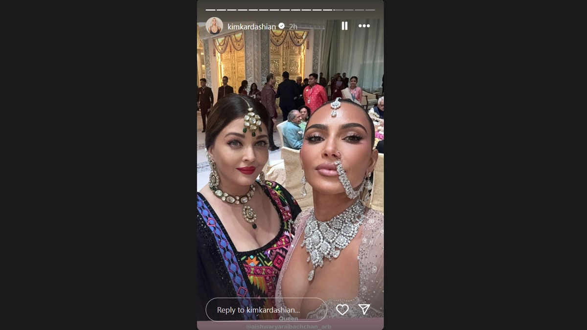 Kim Kardashian sparked a social media frenzy with a breathtaking selfie alongside Aishwarya Rai Bachchan at Anant Ambani and Radhika Merchant’s ‘Shubh Aashirwad’ ceremony. Shared by The Kardashians star on her Insta Story, the photo captures both icons exuding elegance and charm amidst the grandeur of the occasion. This picture of the two stars is certain to brighten up fans’ day! Anant Ambani and Radhika Merchant’s Lavish Wedding To Feature on ‘The Kardashians’? Here’s What Kim Kardashian Has To Say.