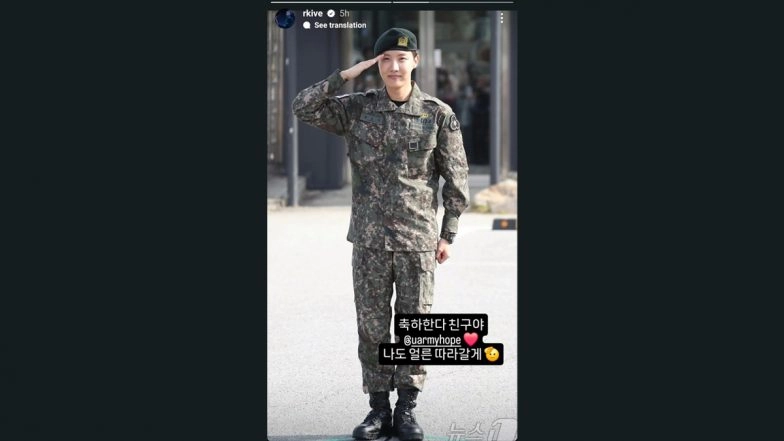 It's a happy day for the ARMY worldwide as BTS member Jung Hoseok, aka J-Hope, is back home after completing 18 months of South Korea's mandatory military service. The "On the Street" singer was discharged on Thursday (October 17). Several photos of J-Hope posing for the paps outside his military base have gone viral across social media platforms. BTS' eldest member, Jin, who was discharged in June, welcomed J-Hope with a bouquet outside his base. BTS' leader RM, who is also serving in the SK military, shared his feelings about J-Hope's discharge through an IG post. Taking to his Instagram stories, RM shared a picture of J-Hope's discharge and penned, "Congratulations my friend. I'll catch up real quick". J-Hope enlisted for the services in April 2023. Welcome Back J-Hope! BTS Star Discharged From South Korean Military Duties, Jin Surprises K-Pop Bandmate With Beautiful Flower Bouquet, See Wholesome Pictures and Videos.