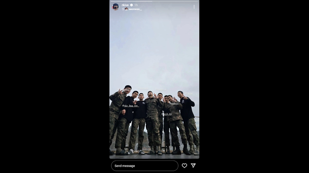 BTS' RM sparks excitement among ARMYs as he shares a post on Instagram while spending time with his military buddies during his ongoing mandatory military service, where he'll remain until 2025. He tags his companions in the photo, showcasing a warm smile and a wink while donning a black shirt over his military uniform. BTS' RM Writes Emotional Letter On Weverse for ARMYs Before Military Service On December 11, V aka Kim Taehyung Shares Pictures of Shaved Head (View Pics).