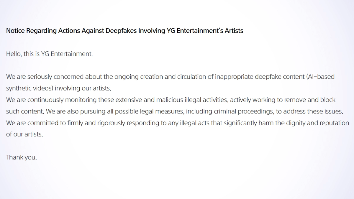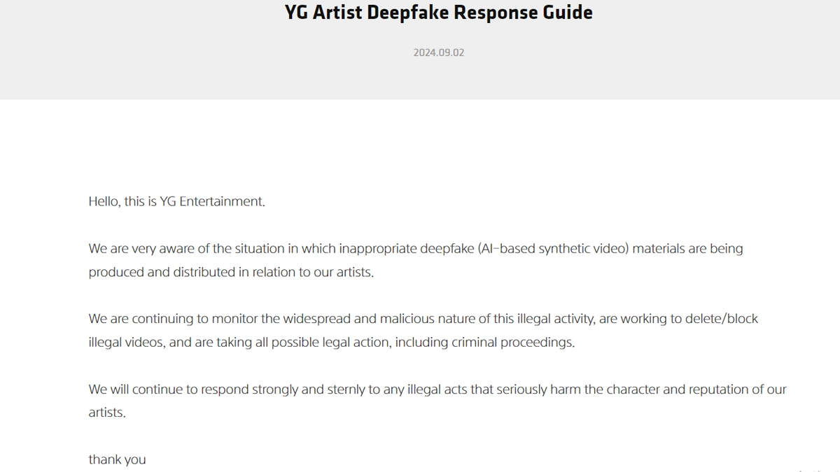 YG아티스트 딥페이크 관련 대응 안내https://t.co/ardcgoPYPE