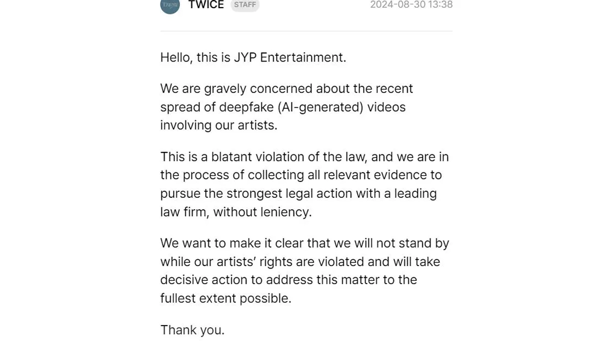 JYP Entertainment’s Legal Crackdown on Deepfake Scandal Targeting K-Pop Idols