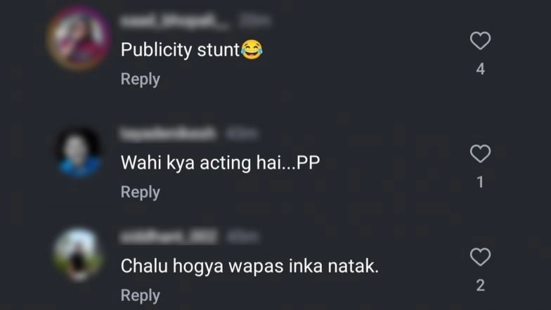 Actress-model Poonam Pandey constantly grabs headlines for some reason or the other. On Friday (February 21), the model-actress was left in shock during a paparazzi session after a male fan came from behind and attempted to take a selfie with her. In a video shared online, Poonam Pandey could be seen gracefully obliging the request, but the fan leaned forward and attempted to forcibly kiss the actress, leaving her and everyone around stunned. However, netizens reacting to the viral video, who are obviously aware of Poonam's past controversies, alleged that the events in the video were completely fake and staged. Calling the entire act as a publicity stunt, netizens bashed the actress in the comments. One user wrote, "Wah kya acting hai", while another commented, "not a good script." Poonam Pandey on ‘India’s Got Latent’: Audience in Splits as Samay Raina Roasts Controversial Actress, Asks ‘Who Doesn’t Know Poonamji?’ (Watch Video).