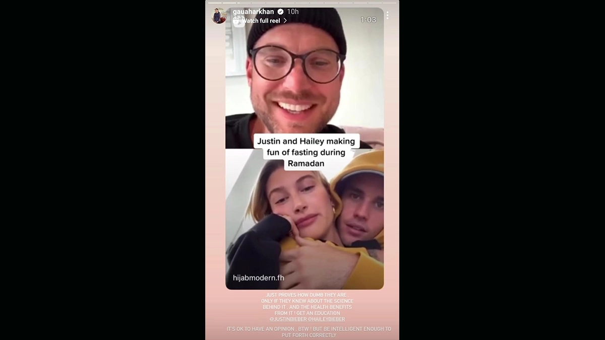 Gauahar Khan recently slammed Justin Bieber and his model wife Hailey Bieber after they made a comment on fasting during Ramzan. The Hollywood stars were recently seen making fun of the Holy month. "I gotta really think about that, I have never really done it...I think our bodies need nutrition to think properly." Justin said in an interview. To which, Gauahar took to her Insta stories and called the celebrity couple 'dumb'. Mom-To-Be Gauahar Khan Looks Radiant in These First Baby Bump Pics!