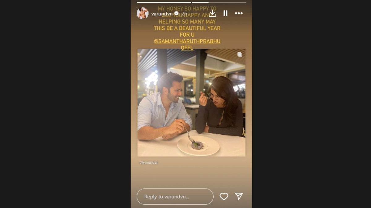 Samantha Ruth Prabhu, who is celebrating her birthday today (April 28), is getting showered with love from fans and fellow celebrities. Varun Dhawan, her co-star in the upcoming series Citadel, shared a birthday message on social media. He posted a sweet throwback photo featuring them enjoying dessert together. In the caption, Varun wrote, 'My honey, so happy to see you happy and helping so many. May this be a beautiful year for you.' Have a look! Samantha Ruth Prabhu Turns 37! Vijay Deverakonda Extends Heartfelt Birthday Wishes to His ‘Kushi’ Co-Star (See Pic).