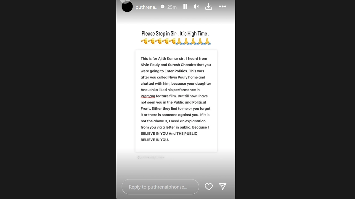 Alphonse Puthren took to Instagram to share a series of posts related to showbiz and politics. The Malayalam filmmaker, via his Insta Story, asserted that ‘Captain’ Vijayakanth has been murdered similar to J Jayalalithaa. He urged actor-politician Udhayanidhi Stalin to investigate the matter, warning that he or his father MK Stalin could be the next targets of the killers. In another Instagram post, the director of Gold wrote about Ajith Kumar, stating that he had heard from Nivin Pauly and Suresh Chandra about the Tamil actor’s plans to enter politics. Alphonse added, “But till now, I have not seen you in the public and political front”, demanding an explanation for the same. Alphonse Puthran Reveals He’s Suffering From ‘Autism Spectrum Disorder’, Deletes Insta Post After Announcing His Decision To Stop His ‘Cinema Theatre Career’.