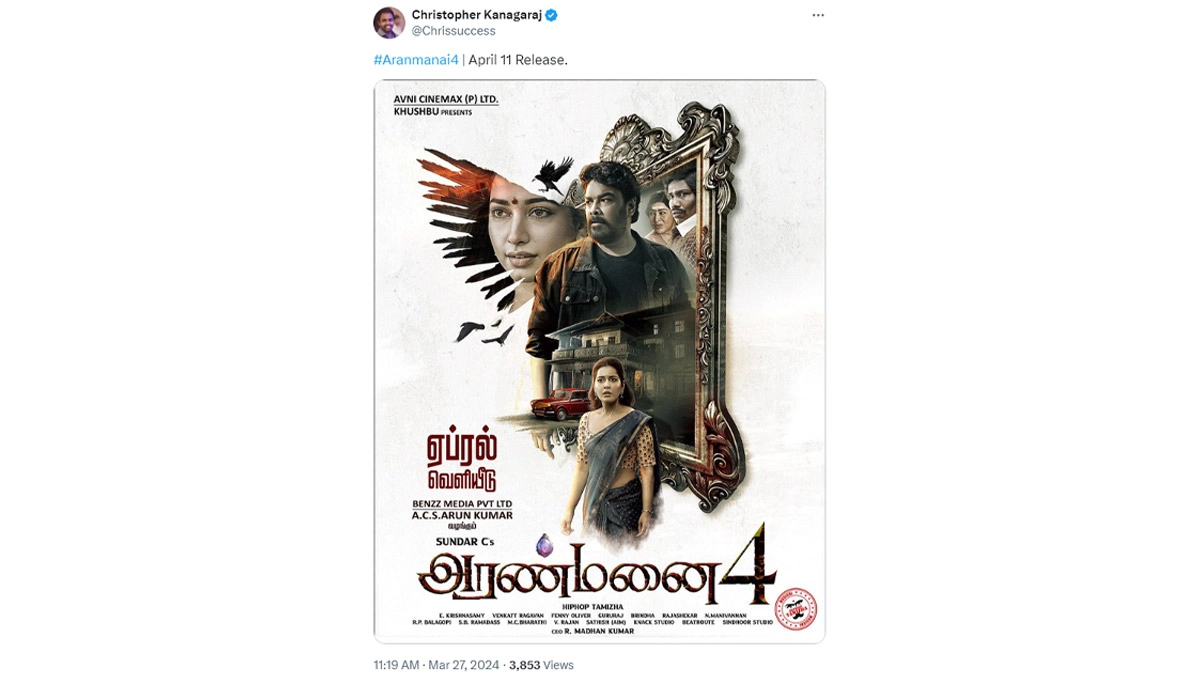 Get ready for the biggest entertainment of this summer🥳#Aranmanai4🏚️ is coming to you, this April 2024; for a rib-tickling & spine-chilling experience🔥