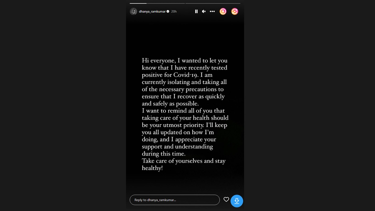 Dhanya Ramkumar Tests Positive For Covid
