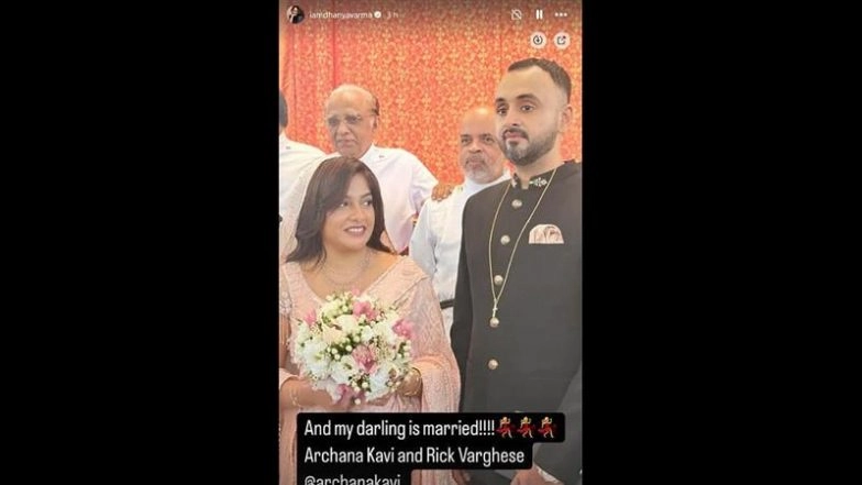 Malayalam actress and social media influencer Archana Kavi has married Rick Varghese. The joyous news of their union was confirmed by television host Dhanya Varma on social media. She took to her Instagram stories on Thursday (October 16) and shared first glimpses from Archana and Rick's church ceremony. Sharing a picture of the couple, Dhanya wrote, "And my darling is married! Archana Kavi and Rick Varghese." This marks Archana's second marriage. The actress was previously married to stand-up comedian Abhish Mathew. The couple who tied the knot in 2016 parted ways in 2021. Musician Raghu Dixit CONFIRMS October 2025 Wedding With Grammy-Nominated Singer Varijashree Venugopal.