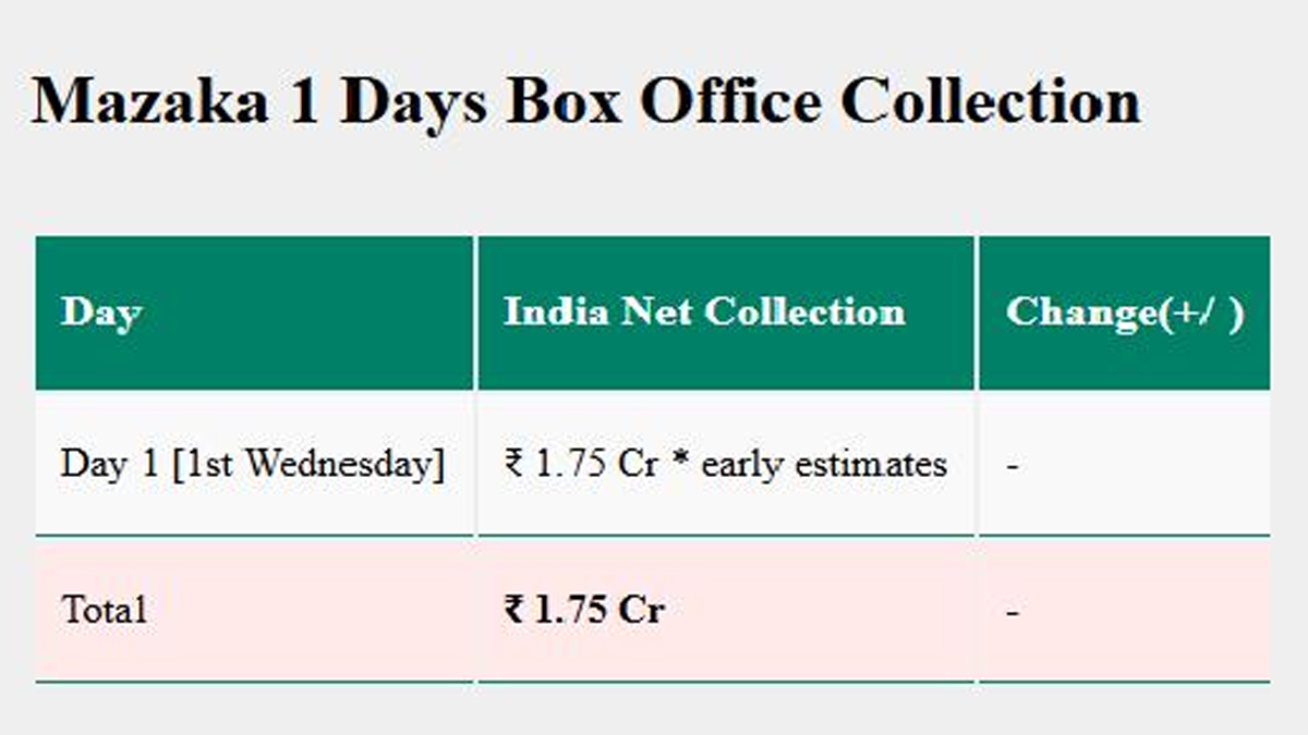 ‘Mazaka’ Movie Collection