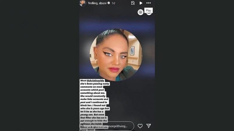 Malayalam star Prithviraj Sukumaran's producer wife, Supriya Menon, recently took to social media to name and shame a troll who had allegedly been targeting her for several years now. On Tuesday, Supriya took her Insta stories to share a photo of the troll and wrote, "Meet Christinaeldo. She has been passing nasty comments on most accounts which post something about me. She would constantly make fake accounts and post, and I continued to block her." Supriya added, "I found out who she is years ago, but let it be as she has a young son. But even that filter she has on is not enough to hold the ugliness she holds inside and spews at me since 2018. Check out her IG Story below. ‘Sarzameen’ Movie Review: Ibrahim Ali Khan’s Stab at Redemption Suffers From ‘Mission Kashmir’ Hangover (LatestLY Exclusive).