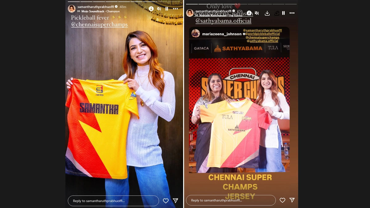 The World Pickleball League is set to kick off on January 24, and ahead of the exciting event, actress Samantha Ruth Prabhu, owner of Chennai Super Champs, unveiled the team’s jersey at a special event held at the Sathyabama Institute of Science and Technology in Sriperumbudur, Chennai. Sharing a glimpse from the event, Samantha posted a series of pictures on her Instagram Story. For the occasion, she wore a chic white polo neck top paired with wide-legged jeans. She accessorised her look with a simple, layered necklace and earrings, keeping her style effortlessly elegant. Her side-parted hair, left loose, completed her stunning look. Chennai Super Champs will face off against Bengaluru Jawans in their first match. On Which Channel World Pickleball League 2025 Live Telecast in India Will Be Available? How To Watch Pickleball Tournament Matches Free Live Streaming Online?