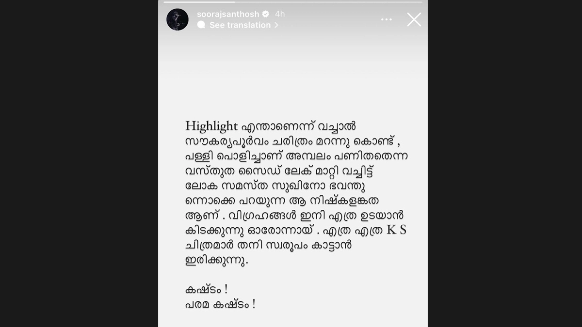 Sooraj Santhosh’s Post On KS Chithra’s Appeal