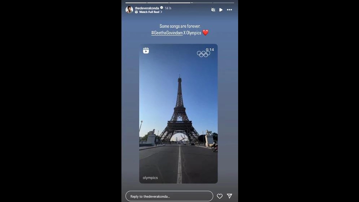 Vijay Deverakonda has a double reason to celebrate! The official Instagram page of the Olympics recently shared a video featuring a mashup song that includes "Inkem Inkem" from his hit film Geetha Govindam, co-starring Rashmika Mandanna. The feel-good video takes viewers on a tour of the Eiffel Tower in Paris, adorned with the iconic Olympic rings in anticipation of the upcoming summer games in July. Deverakonda, clearly thrilled about the recognition, took to his own Instagram stories to share the video with the caption, "Some songs are forever #GeethaGovindam X Olympics." Have a look. VD14: Vijay Deverakonda Announces His Next on Birthday; Film to Be Helmed by Rahul Sankrityan!