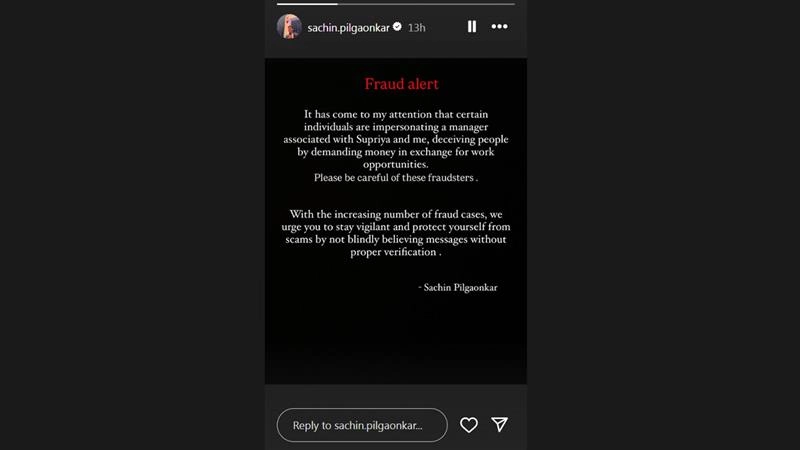 Film and television actor Sachin Pilgaonkar recently took to social media to alert their fans about scams involving him and his wife, Supriya Pilgaonkar. Sachin shared a message on Instagram stories urging people to be cautious of fraudsters impersonating as manager associated with them and demanding money for alleged work opportunities. He emphasised the importance of staying vigilant and verifying any such offers before taking action. Sachin warned his followers to be aware of fake messages and scams circulating online, advising them not to be deceived without proper verification. ‘Tu Tu Main Main’: Sachin Pilgaonkar Expresses Desire To Bring Iconic 90s Show to Digital Platforms.