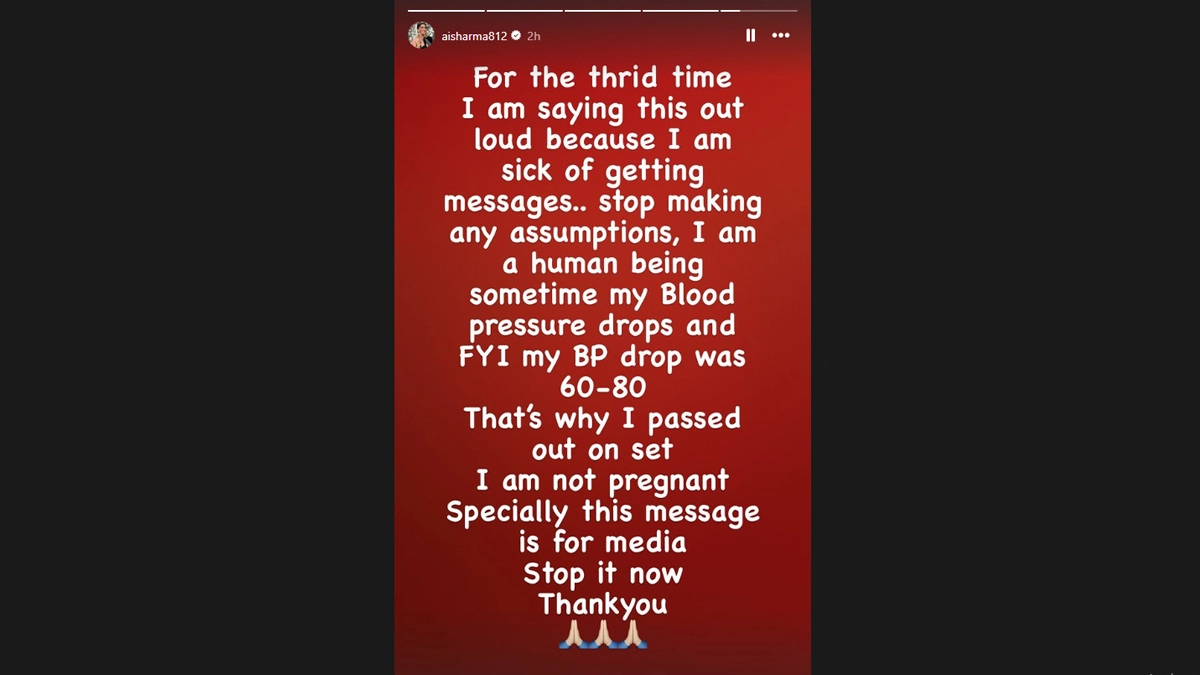 It was recently reported that Aishwarya Sharma is expecting her first child with husband Neil Bhatt. The rumours began after reports claimed that she fainted in the middle of her dance performance and received medical attention on the sets. However, Aishwarya has now put an end to the rumours. The actress took to her Instagram Stories and revealed that she is not pregnant. She asked netizens to stop making assumptions. That's not all; the actress also revealed why she passed out on set. Bigg Boss 17: Aishwarya Sharma and Neil Bhatt Expose Ankita Lokhande and Vicky Jain’s ‘Unhygienic’ Habits!.