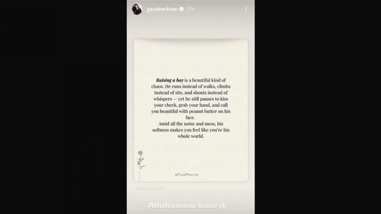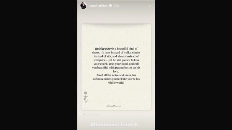 Actress and Bigg Boss 7 winner Gauahar Khan recently embraced parenthood for the second time. She welcomed her second son, Farwaa,n on September 1, 2025. Gauahar's father-in-law and veteran music composer Ismail Darbar recently expressed his thoughts about women continuing work after marriage during an interview. He said that while he doesn't have the right to stop Gauahar from continuing work, his son Zaid definitely has. Amid all the drama, Gauahar took to Instagram and shared a post about parenting boys. The note read, "Raising a boy is a beautiful kind of chaos. He runs instead of walks, climbs instead of sits and shouts instead of whispers - yet he still pauses to kiss your cheek, grab your hand call you beautiful with butter on his face. Amid all the noise and mess, his softness makes you feel like your'e his whole world." The timing of her post has raised speculation among fans online. ‘The Insecurity Reeks’: ‘Bigg Boss 7’ Winner Gauahar Khan’s Father-in-Law Ismail Darbar Says Actress Should Quit Work After Marriage With Zaid Darbar; Netizens React to the Controversial Statement (Watch Video).