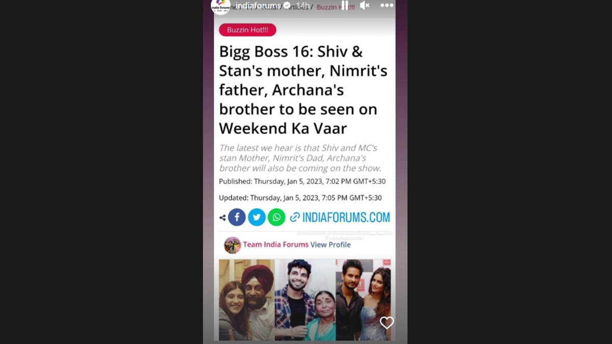 Bigg Boss 16 will soon witness the presence of Shiv and MC Stan's respective mothers, Nimrit's father and Archana's brother. While Tina Datta, Shalin Bhanot, Sumbul Touqeer, Sreejita De and family members of other contestants have graced the show during the Weekend Ka Vaar episode hosted by Salman Khan and have also opinionated their take on situations, it will be interesting to see what these contestants’ family members will do in the upcoming episode. Bigg Boss 16: Major Fight Breaks Out After Shalin Bhanot Pushes Priyanka Chahar.