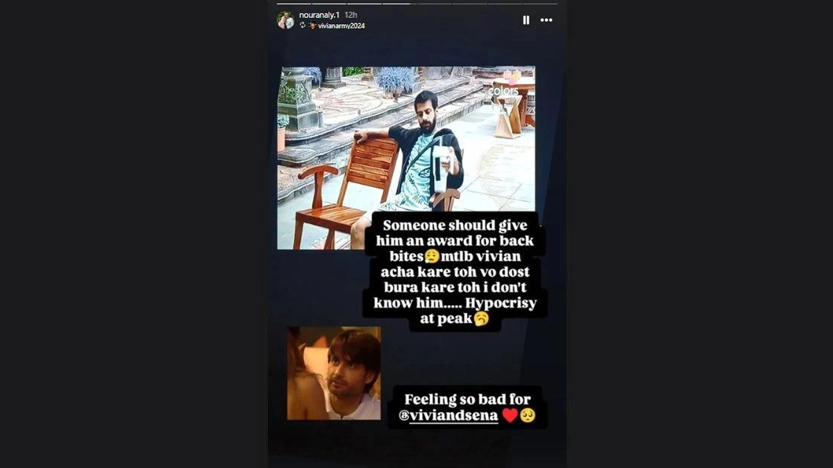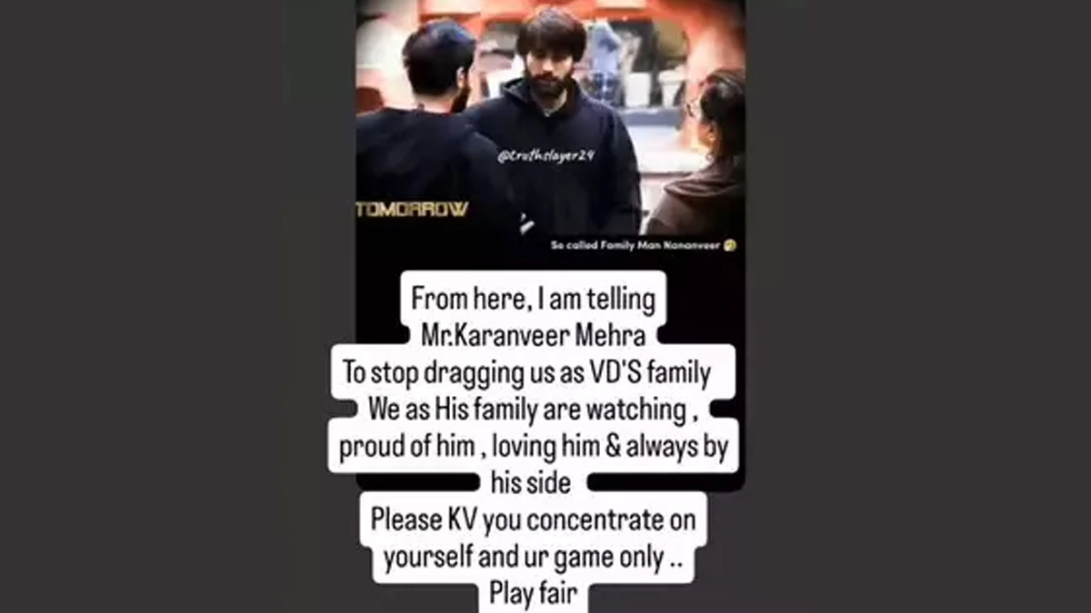 TV actor Vivian Dsena and Khatron Ke Khiladi 14 winner Karan Veer Mehra's relationship in Salman Khan's show Bigg Boss 18 has taken a sour turn. A recent promo showcased a heated argument between the two, with Karan even making personal remarks about Vivian's family. In response to this, Vivian's wife, Nouran Aly, took to Instagram to publicly address Karan. She urged him to refrain from involving their family in the show and to focus on his own game. Nouran expressed her pride in Vivian and assured him of their unwavering support. "From here I'm telling Mr Karanveer Mehra To stop dragging us as VD's family. We as his family are watching, proud of him, loving him and always by his side," Nouran wrote on Insta. ‘Bigg Boss 18’: Rajat Dalal Gets Into a Physical Fight With Avinash Mishra For Chaahat Pandey (Watch Promo Video).