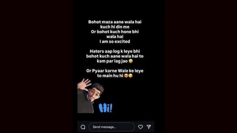 Bigg Boss 19 is almost here, and fans of the popular reality show are brimming with excitement. Bollywood superstar Salman Khan returns for his 16th season as the show's host. The season is scheduled to premiere on August 24, 2025, on JioCinema and Colors TV. Before every season begins, there’s a wave of curiosity among fans about which celebrities will be entering the house. Social media influencer and actor Arbaz Patel, who first grabbed attention in MTV Splitsvilla X5 and later in Bigg Boss Marathi 5, has now hinted at joining Bigg Boss 19. Taking to his Instagram stories a few days back, Arbaz wrote, "Bohot maza aane wala hai kuch hi din me or bohot kuch hone bhi wala hai. I am so excited. Haters aap log ke lie bhi bohot kuch aane wala hai to kaam par lag jao. Or pyaar karne wale ke liye to main hoon hi." ‘Bigg Boss 19’: Indian Adult Video Star Shakespeare Tripathy DENIES Being Part of Salman Khan’s Upcoming Reality Show, Wishes Good Luck to Ones Participating (View Post).