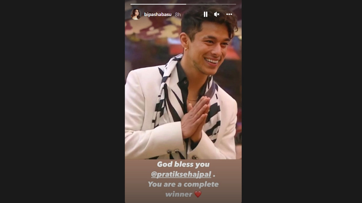 Pratik Sehajpal is the first runner-up of Bigg Boss 15, however, he’s is the true winner for many others, including Bipasha Basu. The Bollywood actress has shared a post on her Insta story congratulating Sehajpal and said, “you are a complete winner”.