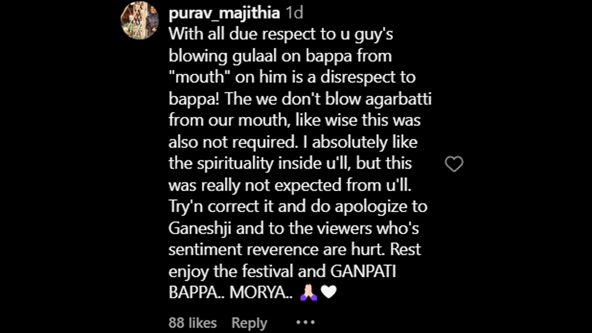 The Ganpati celebrations this year encountered a hiccup when Karan Wahi and Rithvikk Dhanjani faced backlash for blowing gulaal on Lord Ganesha’s idol from their mouths. The actors shared a video of the gesture on social media, which quickly went viral. While they probably meant it as a festive tribute, many netizens deemed it disrespectful. The incident has ignited considerable debate, with people voicing their disappointment. Check out the reactions from netizens here. Ganesh Chaturthi 2024: Kareena Kapoor-Saif Ali Khan, Aamir Khan, Tamannaah Bhatia and Other B-Town Celebs Dazzle in Traditional Attire at Anant Ambani and Radhika Merchant’s Ganpati Celebration (Watch Videos).