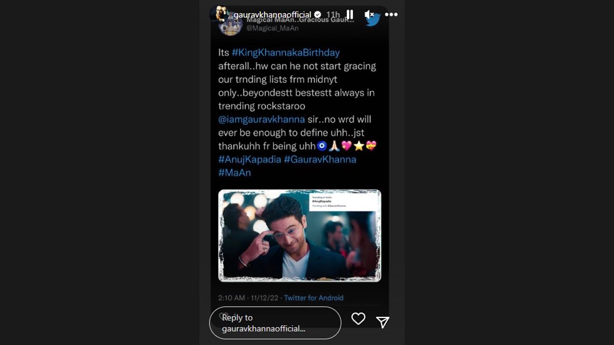 This is my earnest prayer for you. may the love of god be with you all day through with his endless, boundless grace may he richly bless your life with much happiness and success. happy birthday my superstar ❤️❤️#GauravKhanna #SpreadGKLove pic.twitter.com/ooyIWy2H7l