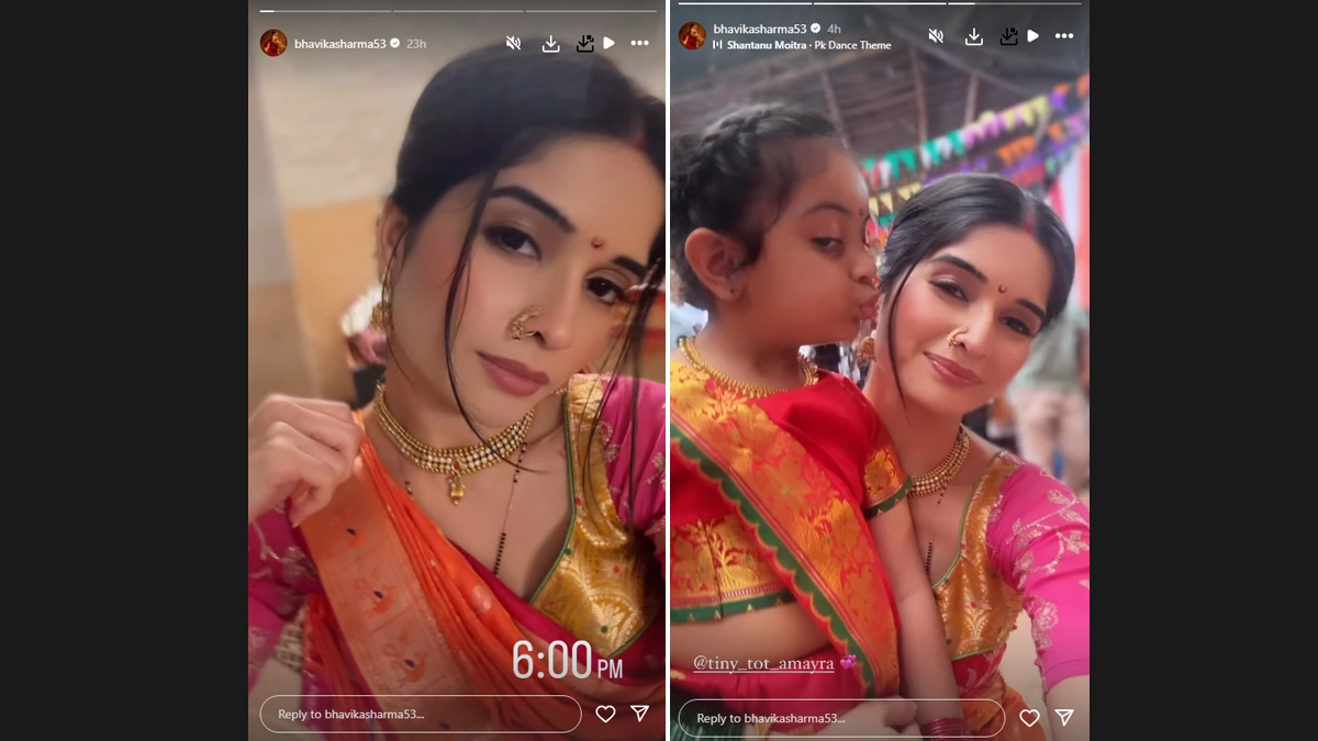 Ghum Hai Kisikey Pyaar Meiin, a beloved Indian television series, continues to captivate audiences with its heartwarming storyline. Currently holding the second spot on the TRP chart, the show features Bhavika Sharma (Savi) and Hitesh Bharadwaj (Rajat) in the lead roles. Recently, Bhavika Sharma, who plays the character of Savi, took to Instagram to share a behind-the-scenes glimpse of the show's shooting. In a heartwarming video, she showcased a sweet moment with her on-screen daughter, Amayra (Sai), who adorably could be seen giving a peck on her cheek. The video also offered fans a glimpse into the traditional Marathi attire worn by the young actresses, adding to the charm of the scene. ‘Ghum Hai Kisikey Pyaar Meiin’: Bhavika Sharma Aka Savi Oozes Traditional Glam in Cute Sneak-Peek From Upcoming Episodes.