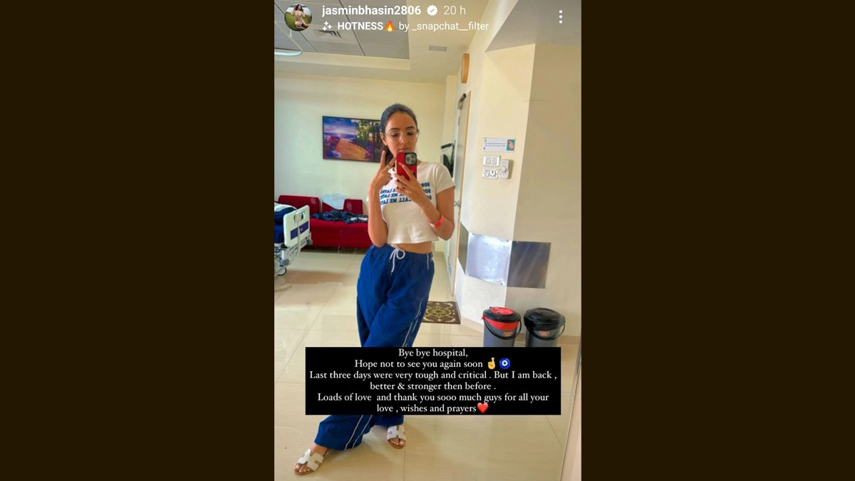 Renowned TV actress Jasmin Bhasin, celebrated for her stellar performances, has been facing health challenges of late. A few days ago, she was hospitalised due to a stomach infection, a condition she openly shared with her concerned fans. Via Instagram stories, Jasmin kept her followers informed about her health journey. Encouragingly, she recently posted a mirror selfie on Instagram to share a good news. She shared that the past three days had been challenging and critical, but now, she stands discharged from the hospital and is feeling stronger than ever. Fashion Faceoff: Jasmin Bhasin or Mouni Roy, Who Nailed this Black Masaba Gupta Saree Better?