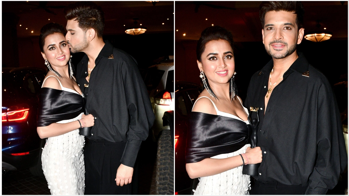 Karan Kundrra and Tejasswi Prakash once again showed off PDA during an awards ceremony. The two who looked gorgeous together were seen posing for the paparazzi at the event held last evening in Mumbai. Karan didn’t shy away from kissing his ladylove while posing for the shutterbugs. And that moment of TejRan is driving the internet crazy! Tejasswi Prakash and Karan Kundrra Seen Walking Hand-in-hand After Rumours of Their Breakup Went Viral (Watch Video).
