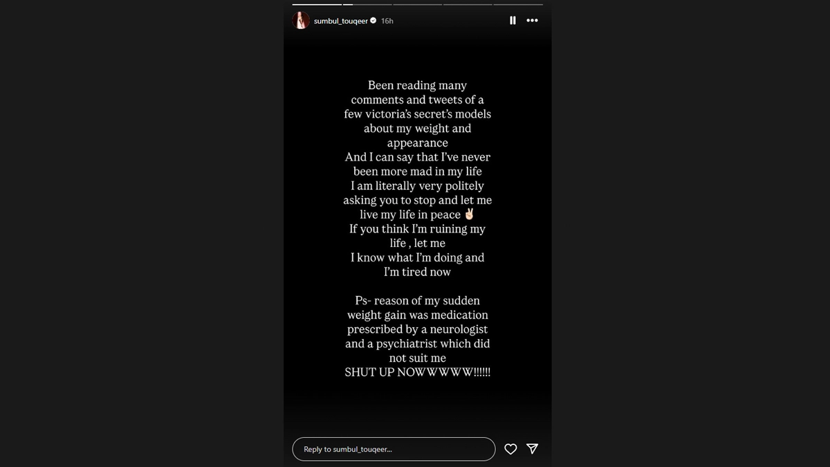 Television actress Sumbul Touqeer, widely known for her appearance in Bigg Boss 16, has been facing online trolling over her appearance. The actress, who has been subjected to body-shaming remarks, recently took to Instagram to silence the negativity and address the real reason behind her weight gain. In a strongly worded post, Sumbul called out those making hurtful comments, sarcastically referring to them as ‘Victoria’s Secret models’. Expressing her frustration, she wrote, “Been reading many comments and tweets of a few victoria’s secret’s models about my weight and appearance. And I can say that I’ve never been more mad in my life I am literally very politely asking you to stop and let me live my life in peace If you think I’m ruining my life, let me I know what I’m doing and I’m tired now. Ps-reason of my sudden weight gain was medication prescribed by a neurologist and a psychiatrist which did not suit me. SHUT UP NOWWWWW!!!!!!!” Taylor Lautner Defends Selena Gomez, Slams Trolls for Body-Shaming Her Weight Loss After SAG Awards 2025 Appearance.