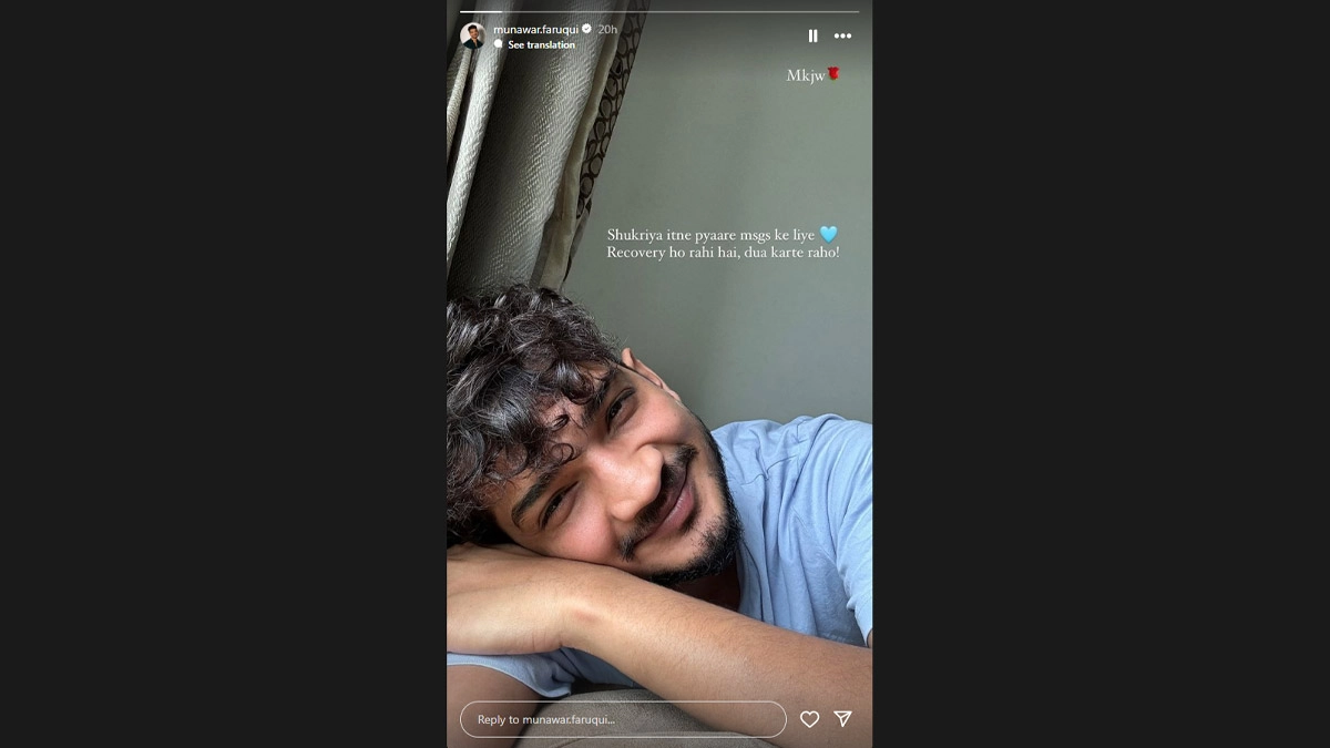Munawar Faruqui, the winner of Bigg Boss 17, has provided an update on his health, reassuring fans that he is on the path to recovery. Concerns arose among fans of the renowned stand-up comedian after pictures of him hooked up to an IV drip went viral on the internet. Since then, his admirers have been wishing him a speedy recovery. Munawar took to his Insta Story, shared a picture of himself, and gave his health update. He expressed gratitude to his supporters and urged them, saying, ‘Dua karte raho (Keep praying)’. Munawar Faruqui Hospitalised? Fans Trend ‘Get Well Soon Munawar’ As Pic of Bigg Boss 17 Winner Hooked Up to IV Drip Goes Viral.