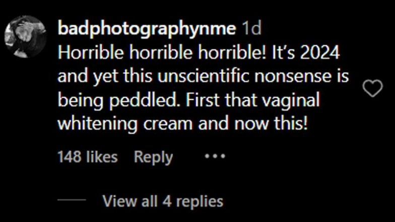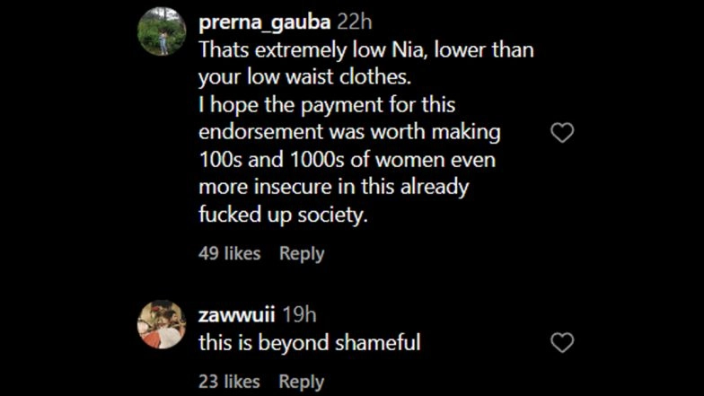 Nia Sharma is under fire for promoting women's health supplements claiming to "tighten the vagina". Her Instagram collaboration with the brand ignited outrage, with users accusing her of spreading misinformation and reinforcing harmful stereotypes. In the controversial post, Nia appears struggling with “loose” items like dresses, bottle caps, and shoelaces. The ad wraps up with her finding a perfectly fitting dress, delivering the tagline, "Do it right, keep it tight," which triggered further backlash. Netizens argue that such claims are not only misleading but also perpetuate damaging views about women's bodies. Many social media users expressed disappointment, accusing Nia of endorsing misogynistic ideals. Nia Sharma Shares a Scathing Post That Highlights Indians’ Hypocrisy on ‘Black Lives Matter’ and Their Obsession With Fair Skin (View Post).