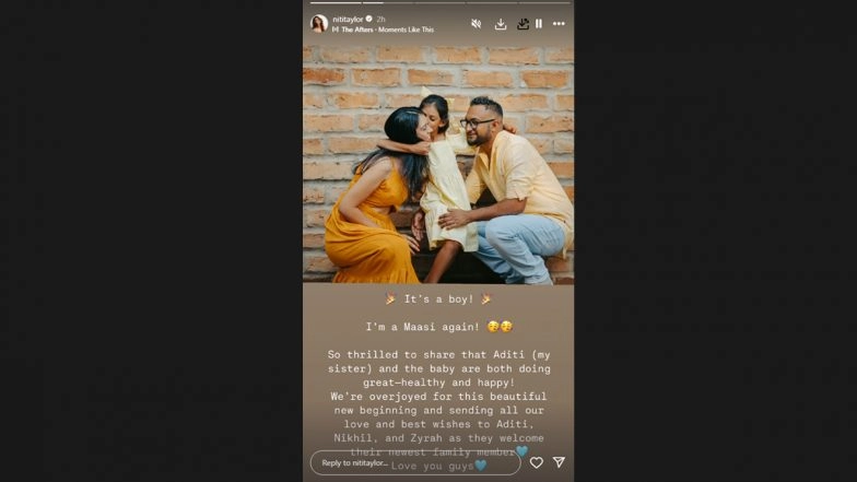 Actress Niti Taylor took to her Instagram stories on Wednesday and dropped a note saying, "It's a boy". While many speculated that the TV actress had given birth to her first child, it was not really the case. A few hours later, she revealed her sister Aditi Parbhoo had delivered a baby boy. Sharing the happy news of turning a Maasi again, Niti Taylor shared a pic and wrote, "It's a boy! I'm a Maasi again! Soo thrilled to share that Aditi (my sister) and the baby boy are both doing great healthy and happy! We are overjoyed for this beautiful beginning and sending all our love and best wishes to Aditi, Nikhil and Zyrah as they welcome their newest family member. Love you guys." Niti Taylor’s Divorce Rumours Debunked: Actress Drops Husband’s Surname for THIS Reason!.