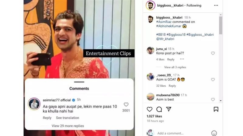 Asim Riaz 'Fake' Comment On Abhishek Kumar's Photo
