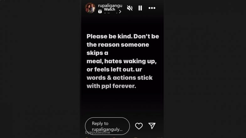 Rupali Ganguly shared an emotional note following a week-long feud with her step-daughter, Esha Verma, who accused her of having an extra-marital affair with her father. In her Instagram status, the Anupamaa actress addressed the situation without naming anyone directly. She urged not to spread hatred, emphasising that such negative emotions can deeply affect a person’s life. She encouraged kindness and understanding, reminding everyone that life is complex, and people’s actions may not always be what they seem. Rupali Ganguly Shares Cryptic Post on ‘Silencing the Noise’ After Sending Defamation Notice to Stepdaughter Esha Verma.