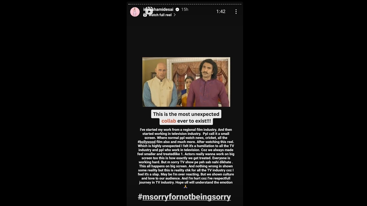 Actor Ranveer Singh is creating waves online with his recent collaboration with adult movie star Johnny Sins. While the majority of the people are taking the advertisement on the lighter end, there remains a section of people who are not very happy with it. TV actress Rashami Desai is not at all amused by the recent Ranveer-Johnny collab. The commercial served as a parody of Hindi serials with their signature dramatic sound effects and dialogues. Taking to her Instagram stories, Rashami wrote, "Everyone is working hard. But I'm sorry, TV show pe ye sab nahi dikhate. This all happens on big screen." Rashami concluded by saying, "Hope you all will understand the emotion." Ranveer Singh and Porn Star Johnny Sins Feature in a Funny 'Bold Care' Ad That Trolls Daily Soap (Watch Video).